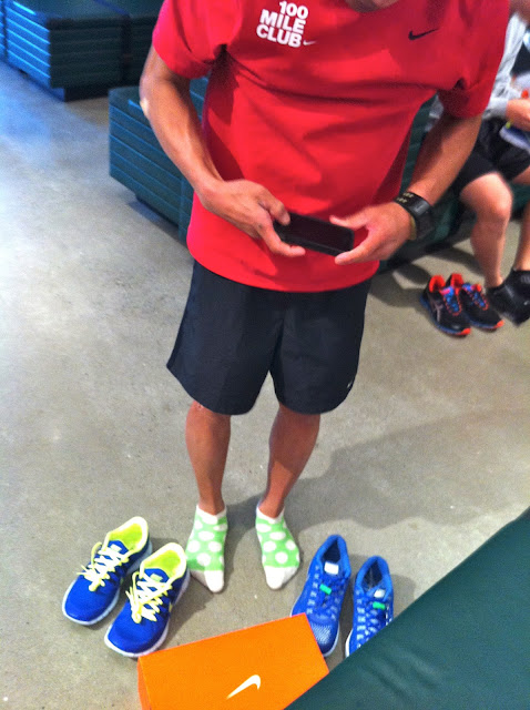 Check out Junior's socks as he is about to run in the Nike Free's. So fun to try out shoes that aren't even out yet.